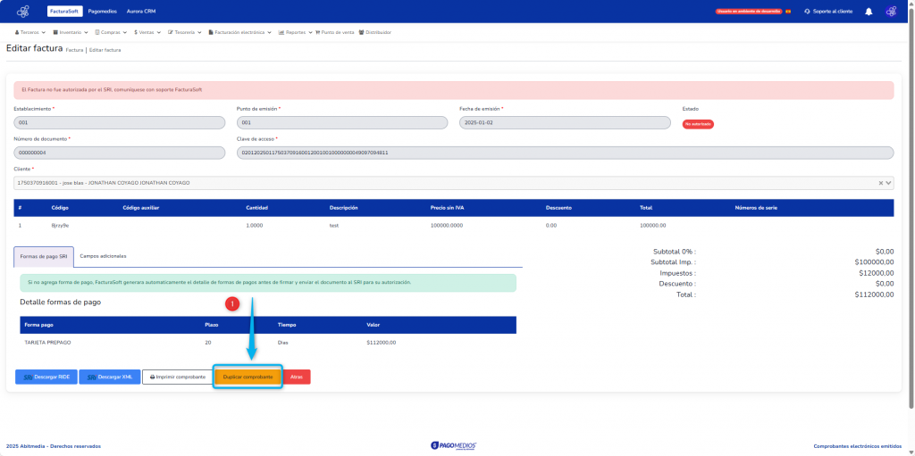 En este documento se explica cómo duplicar un comprobante electrónico. Este procedimiento se utiliza cuando un comprobante electrónico se encuentra en estado No Autorizado o cuando se necesita emitir otro comprobante con la misma información, evitando realizar nuevamente todo el proceso desde cero.