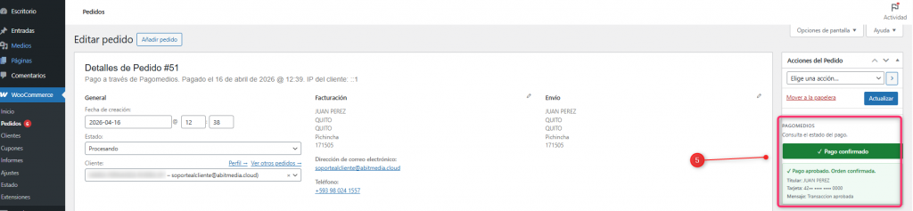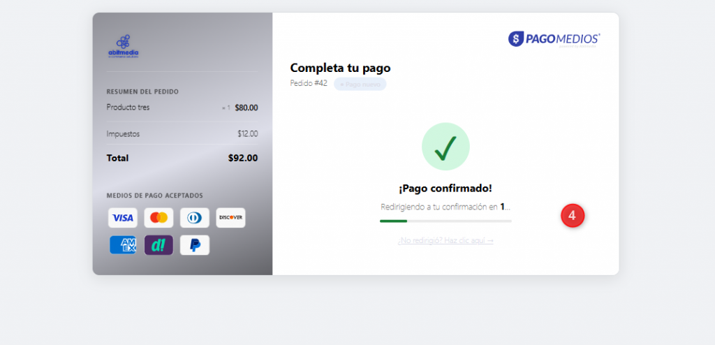 Una vez que su cliente concluya con el pago, se redireccionará al proceso habitual de su comercio.