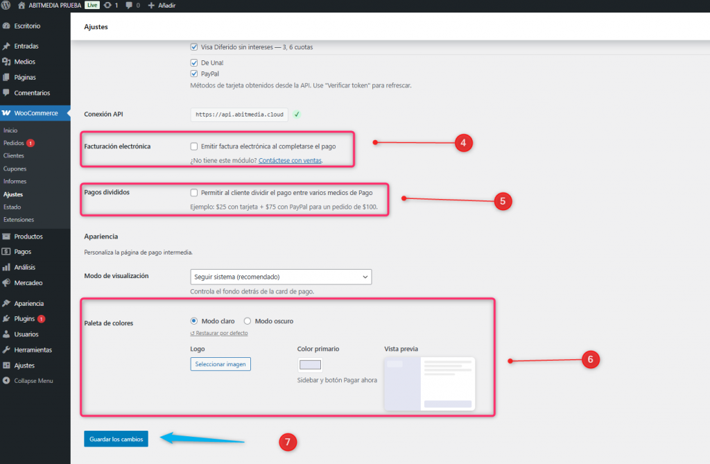 - Pagos divididos: Active esta opción si desea permitir que el cliente pueda pagar utilizando varios medios de pago. Si no requiere esta funcionalidad, déjela desmarcada.