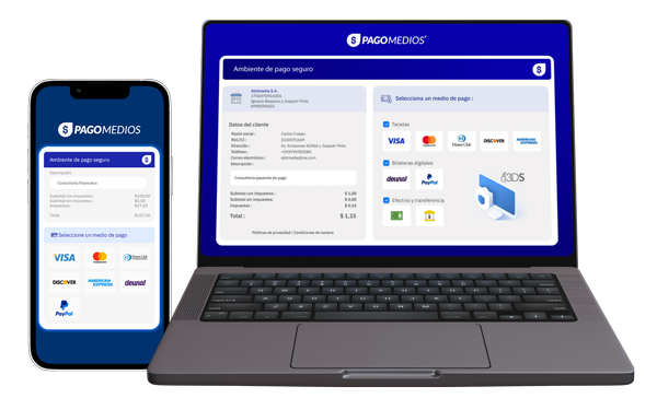 Pagomedios es una plataforma de cobros en línea propiedad de Abitmedia S.A., una marca registrada que opera desde 2017. A lo largo de estos años, la plataforma ha experimentado constantes mejoras y optimizaciones para perfeccionar su funcionamiento. Como una solución 100% ecuatoriana, Pagomedios permite a las empresas expandir su comercio electrónico a nivel nacional al facilitar cobros no presenciales que se depositan directamente en su cuenta bancaria.